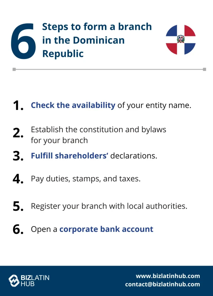 When you form a branch in the Dominican Republic, you will need to go through the following six key steps: