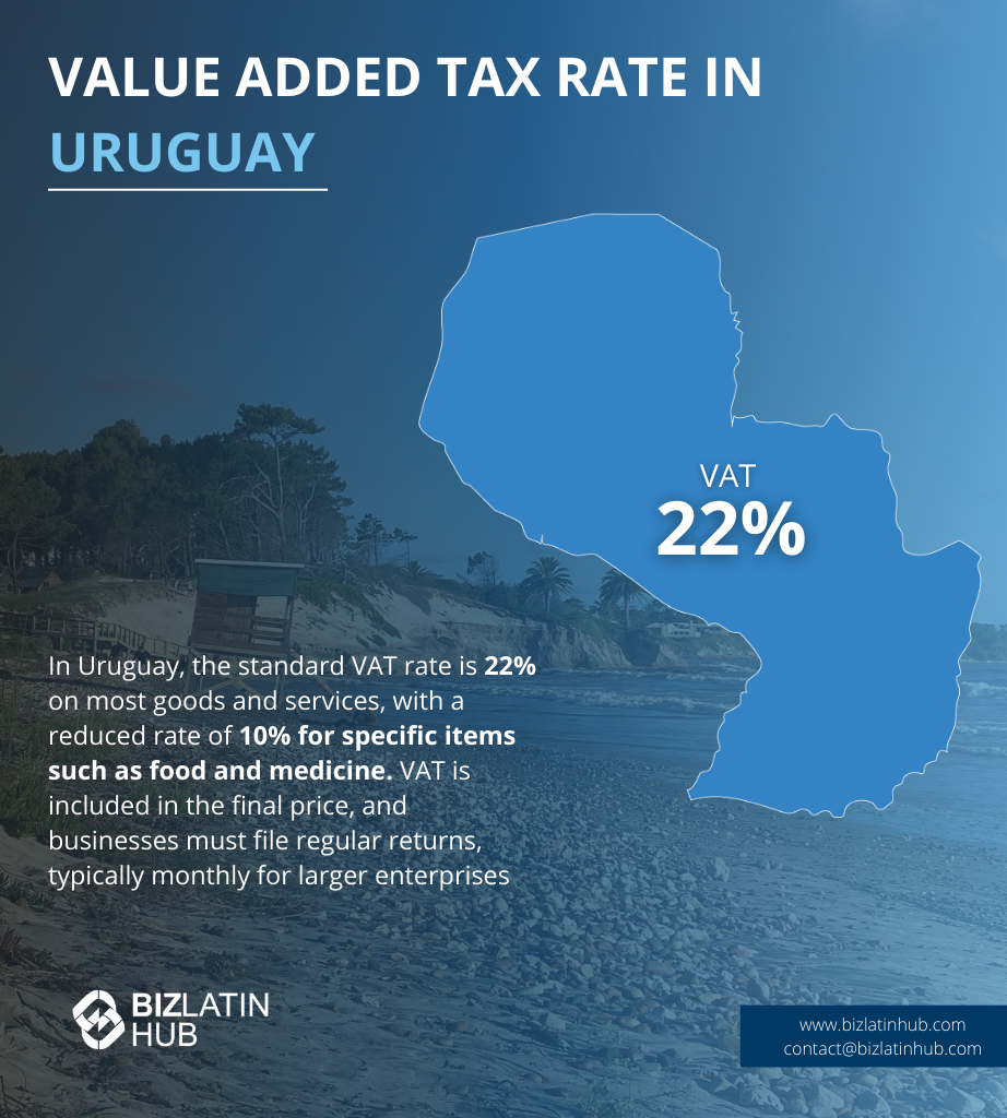 | What Is The Uruguayan Value Added Tax Rate? | The standard VAT (IVA) rate in Uruguay is set at 22% |