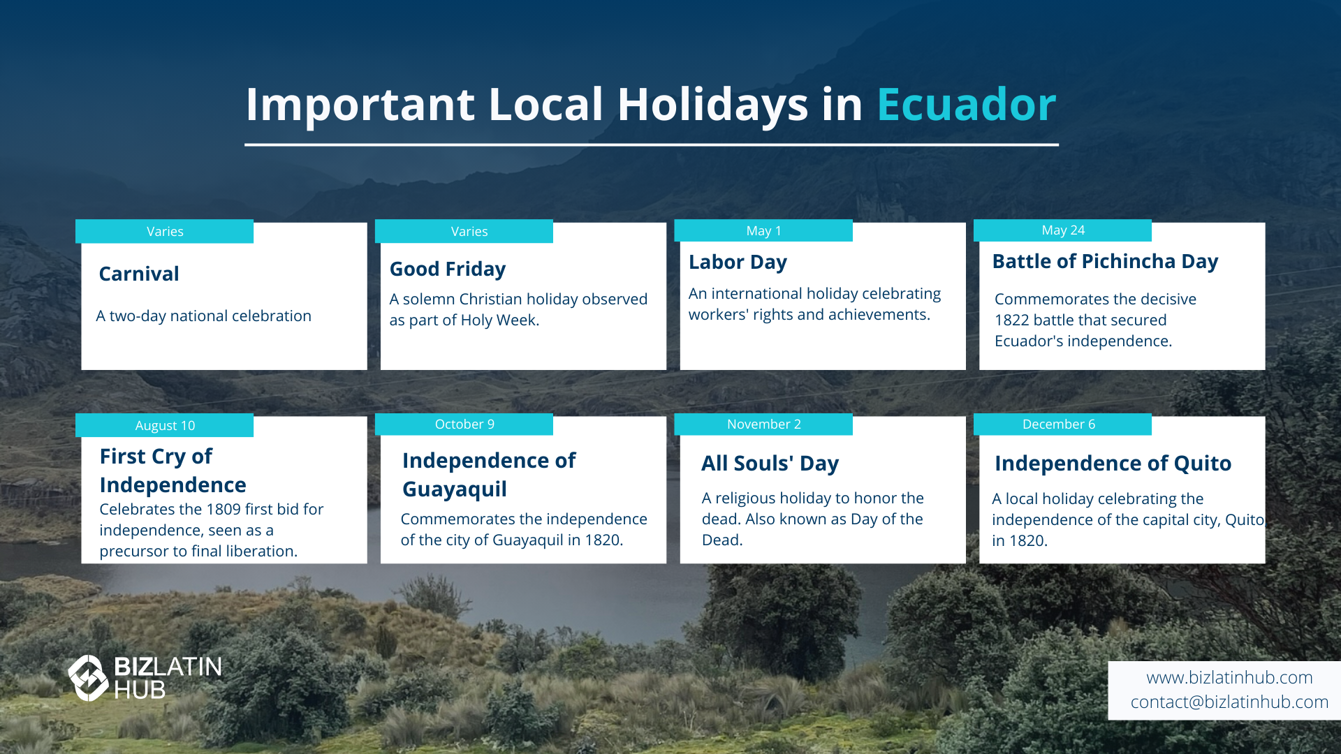 Contact us now, or visit our website at bizlatinhub.com for more information about doing business in Ecuador.