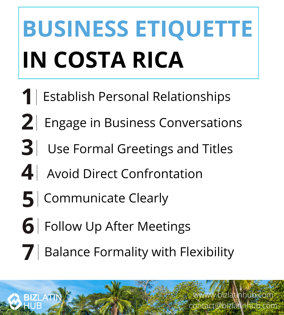 Here are some business etiquette tips in Costa Rica to keep in mind: