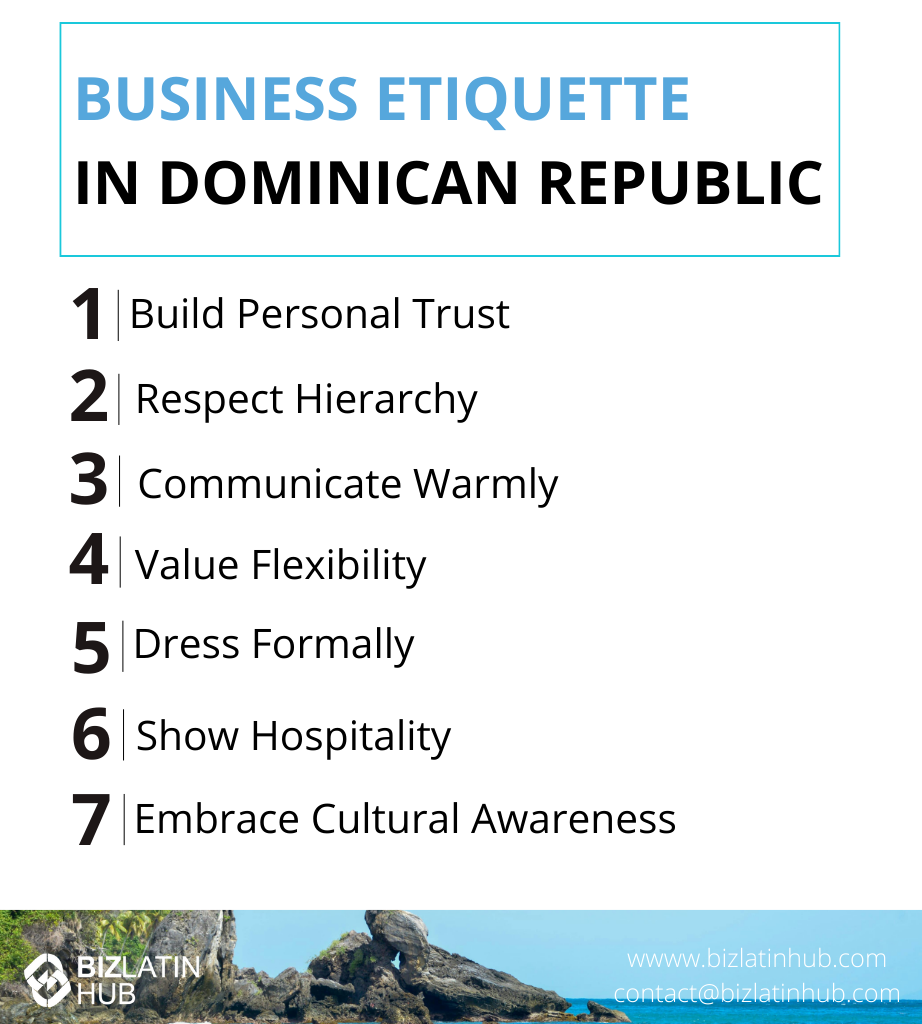 Understanding local culture and business etiquette in the Dominican Republic is crucial for success. Building personal relationships is key. Casual chats over coffee or lunch support these connections. Recognizing Dominican cultural cues is important. Combining tradition with innovation helps forge strong business connections.