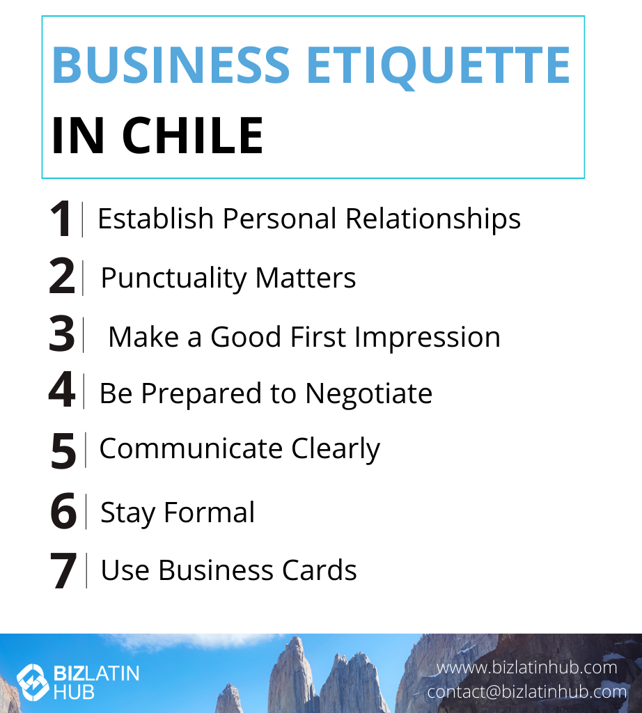 With offices in Santiago and years of experience advising clients in Chile, Biz Latin Hub provides practical insight into the nuances of local business etiquette.