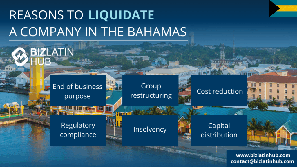 | What are the reasons to liquidate a business in the Bahamas? | These vary, but the key point is to stay compliant and in good standing with the authorities. |