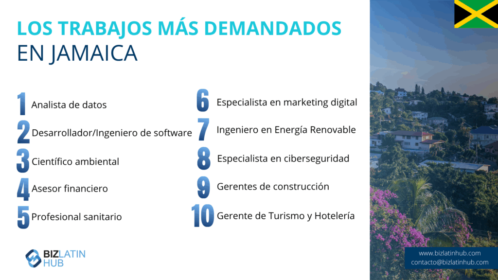 | ¿Cuáles son los principales sectores de contratación en Jamaica? | El turismo, la externalización de procesos empresariales (BPO), el desarrollo de software, las energías renovables y los servicios financieros liderarán el mercado en 2025. |