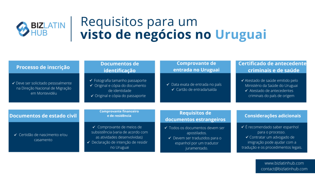 A Biz Latin Hub pode ajudar você a obter residência no Uruguai, bem como registrar uma empresa no país se esse for um dos motivos para você investir no país. Nossa gama de serviços de back office líderes de mercado foi projetada para ajudá-lo a manter a conformidade e permitir que você se concentre no que faz de melhor: expandir seus negócios. Este guia detalha os principais requisitos e o processo passo a passo para você solicitar a residência legal, um processo conhecido por ser um dos mais acessíveis da América do Sul.