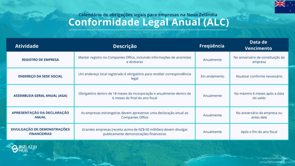Que requisitos de conformidade existem para a administração de empresas na Nova Zelândia?