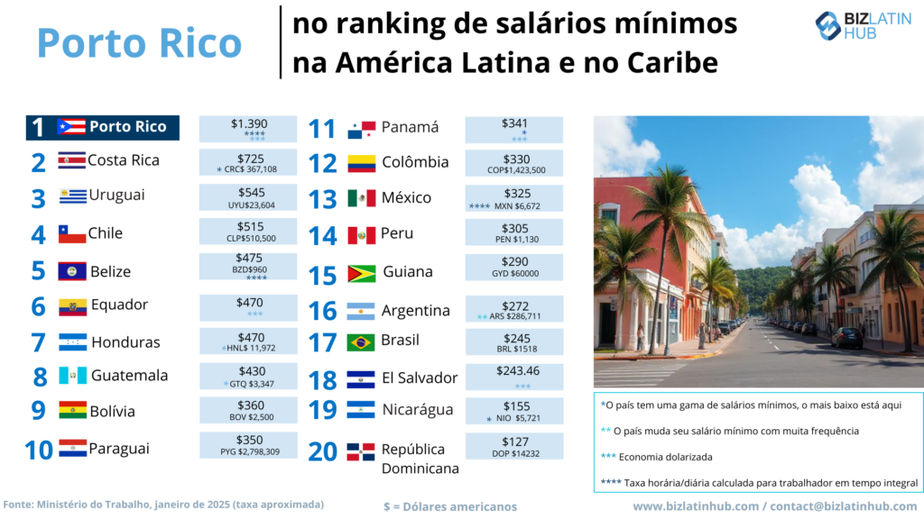 Os salários em Porto Rico variam de acordo com o setor. Aqui está uma comparação simples: