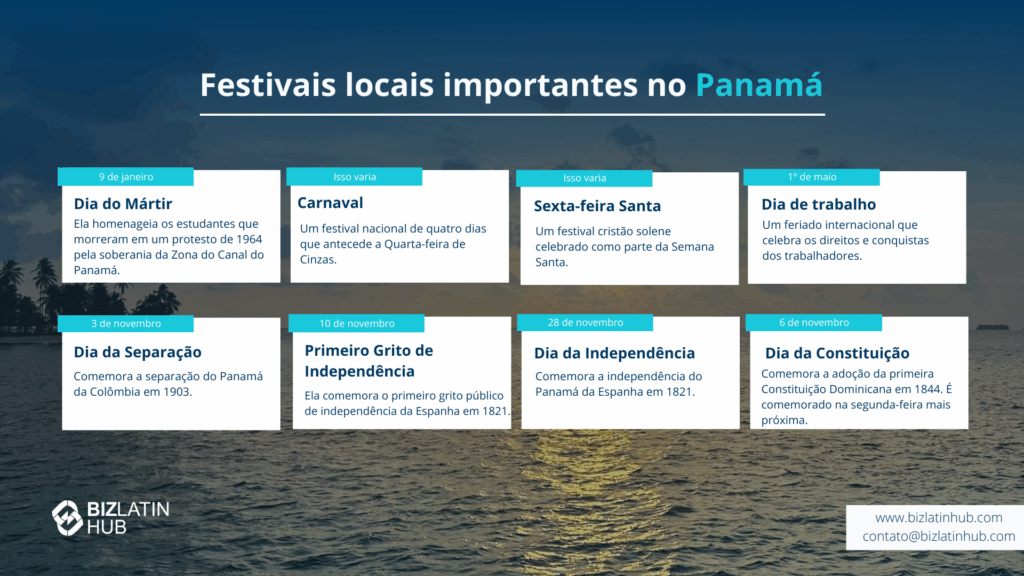 Para obter orientação adicional, considere entrar em contato com a Câmara de Comércio do Panamá ou com consultores de negócios locais que possam fornecer informações mais específicas para o seu setor. A participação regular em eventos de networking de negócios também pode ajudar você a criar conexões valiosas enquanto pratica esses protocolos culturais.
