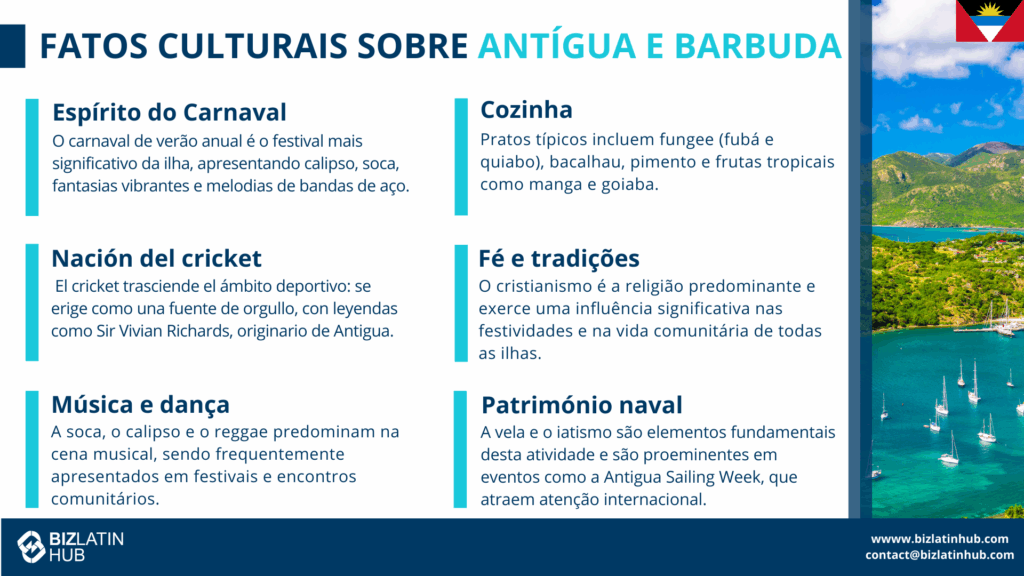 Você está fazendo negócios ou considerando a formação de empresa em Antígua e Barbuda? As ilhas apresentam um ambiente amigável, onde se fala inglês, com forte cultura caribenha, herança colonial britânica e conexões globais modernas. Entender as normas, expectativas e etiqueta locais ajudará você a construir relacionamentos sólidos, evitar mal-entendidos e parecer respeitoso e profissional.