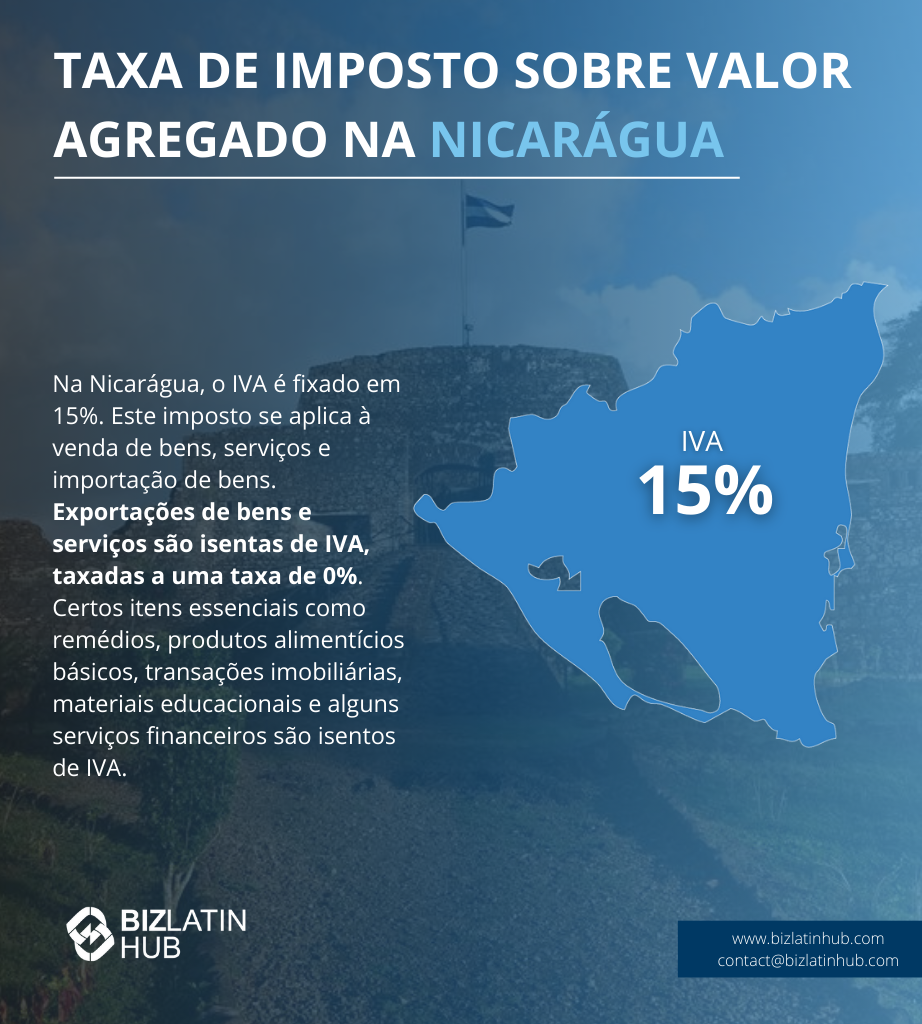 | Qual é a alíquota do imposto sobre valor agregado da Nicarágua? | A taxa do Imposto sobre Valor Agregado (IVA) é de 15%. |